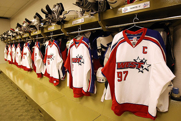 While the Western Conference sweaters were green and carried the smell of lumberjack musk, the Eastern Conference ones made players look like red-striped milk bags with felt lettering.
